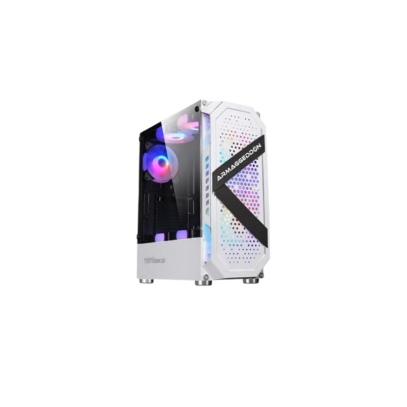 CASING PC ARMAGGEDDON TRITON PRO 200 M-ATX 4X FREE FAN ARGB WHITE - Kios komputer