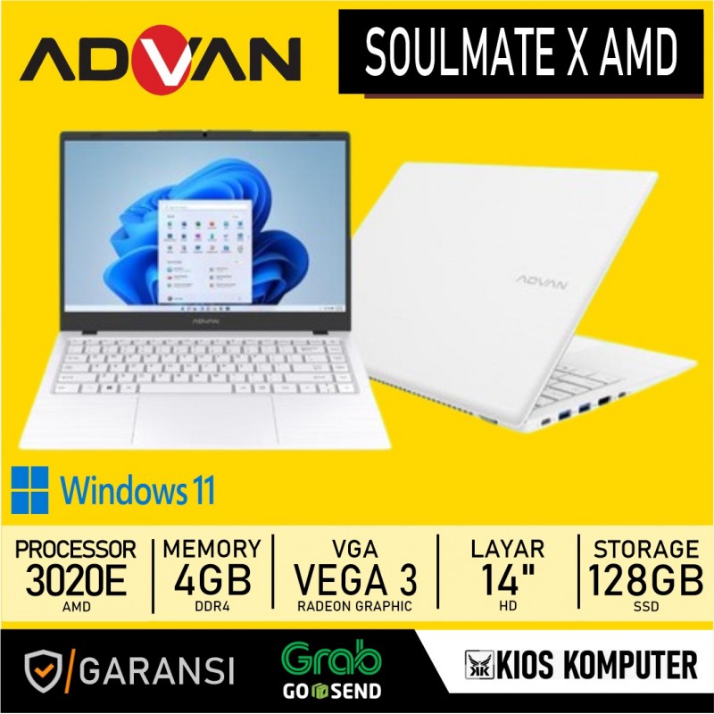 LAPTOP ADVAN SOULMATE X AMD 3020E 4GB DDR4 128GB SSD RADEON VEGA 3 14 INCH FHD - Kios komputer