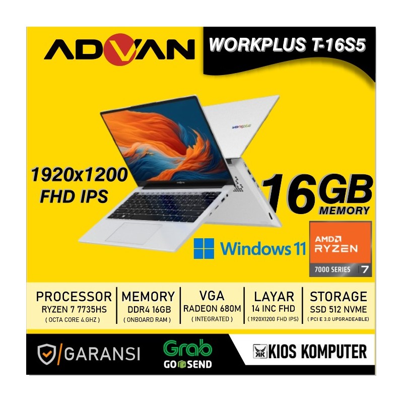 ADVAN WORKPLUS T-16S5 RYZEN 7 7735HS 16GB DDR4 512GB 14INCH - Kios komputer