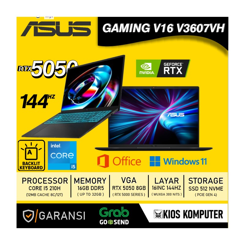 ASUS GAMING V16 V3607VH CORE I5 210H RTX 5050 8GB 16GB 512GB NVME 16INCH IPS - Kios komputer